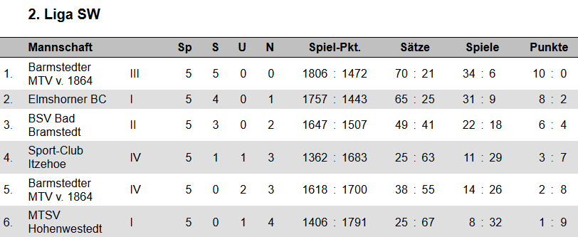 Gestern durften wir nach Barmstedt fahren für das Auswärtsspiel gegen den BMTV4. Nach den drei Eingangsdoppeln von Malte und Ove, Dennis und Karsten sowie Jana und Kai-Ling stand es 3:0 für uns. Im Dameneinzel musste sich Kai-Ling ihrer Gegnerin geschlagen geben. Jana und Dennis hatten im Mixed keine Mühe für einen Sieg. Malte und Karsten gewannen ihre Einzel klar. Bisher alles 2-Satz-Spiele. Lediglich Ove musste nach verlorenem ersten und gewonnenem zweiten in den dritten Satz. Diesen gewann er 21:13 und so stand es am Ende 7:1 für den EBC.